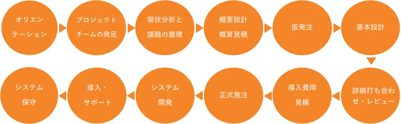 ITシステムは稼動したときから陳腐化が始まります。システムが完成したあとも仕事は日々新しい局面をむかえて進化しつづけます。こうした変化に対応するため、われわれはシステム保守契約を通じ、引き続きシステムの維持・強化につとめ、お客様のお仕事の変化に応じた提案・サポートを行っています。